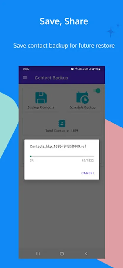 Contact Backup app helps you to backup your all contacts manually and you can also schedule your contact backup automatically every month, week or daily.