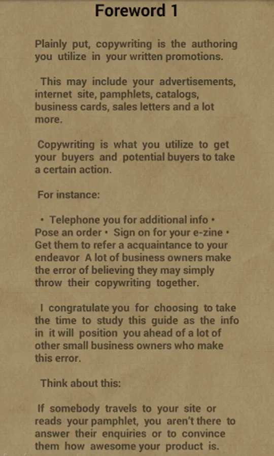 A lot of business owners make the error of believing they may simply throw their copywriting together. I congratulate you for choosing to take the time to study this guide as the info in it will position you ahead of a lot of other small business owners who make this error.