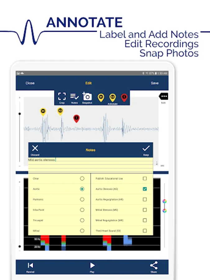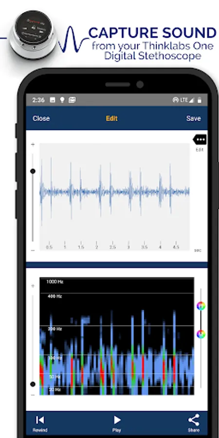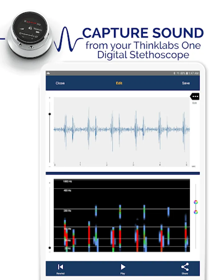 Unlock the full potential of your stethoscope with Thinklabs Wave, a recording app with robust features for education, learning, research, and telemedicine. With Wave, you’ll be able to capture, edit, and share sounds on the fly!