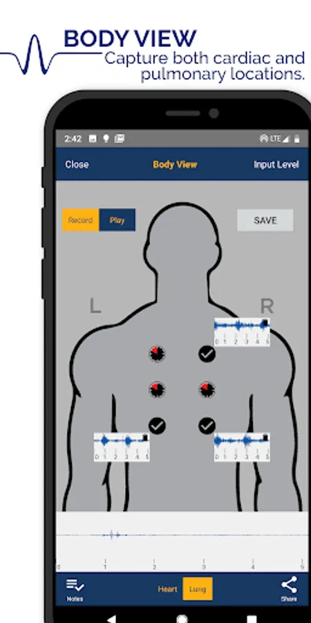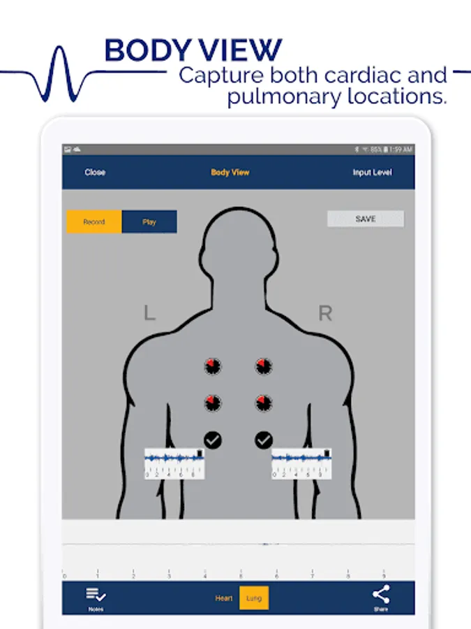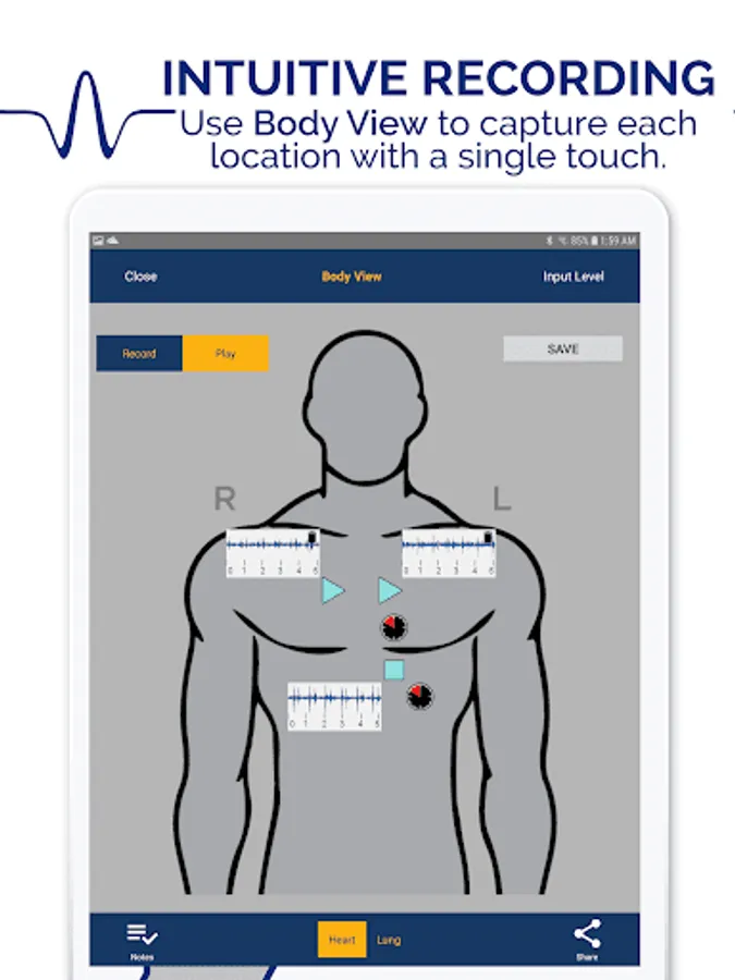 - Three different views for capturing sounds, including Body View, Thinklabs Wave lets you label and save sounds in the location where you captured your recording;