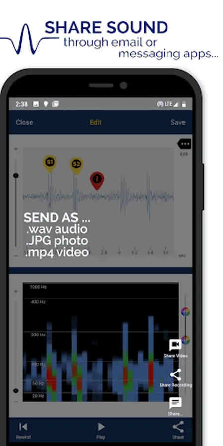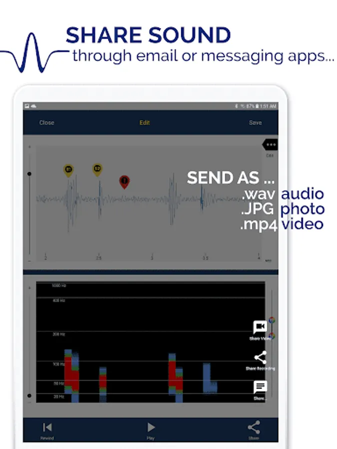 - Share recorded sounds via email, WhatsApp, or other commonly used apps.