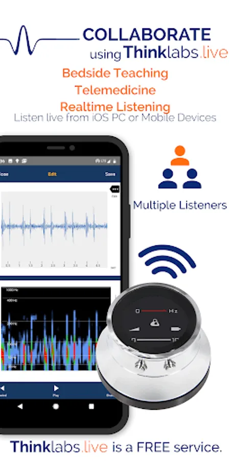 - Transmit sounds live via Thinklabs.live FREE telemedicine service