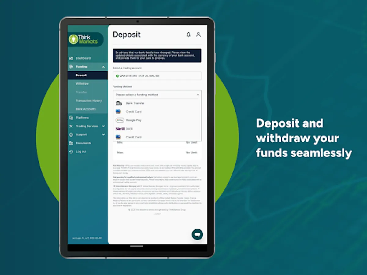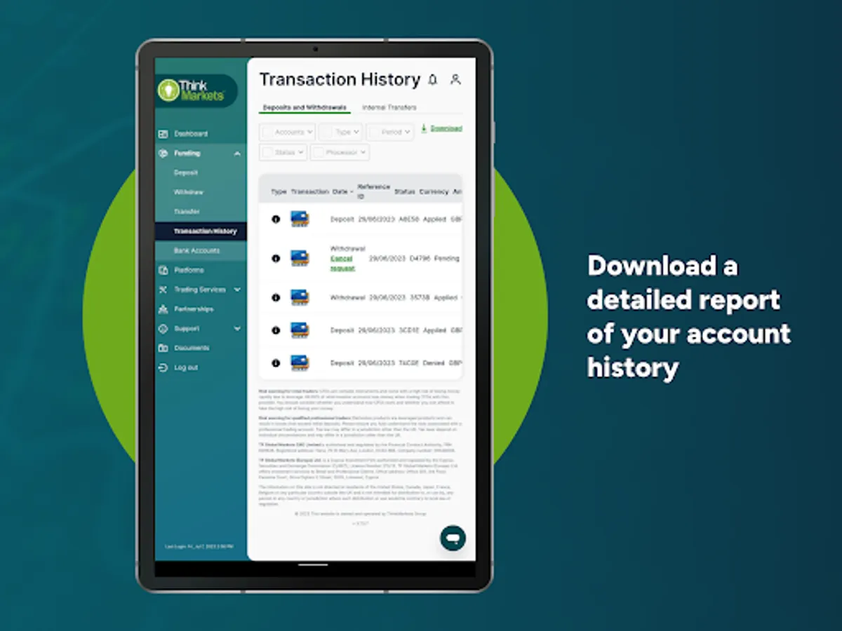 ThinkPortal is an exclusive account management hub for ThinkMarkets traders. Here’s what you can do: