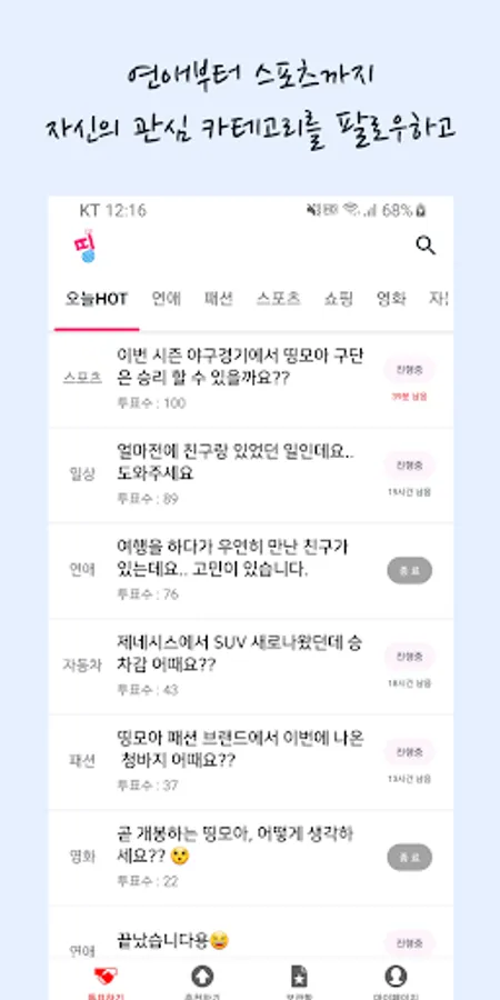 Thingmore (KR) is a system platform that enables two-way communication and voting on a variety of topics (love, stock, real estate, sports, shopping, etc.).
