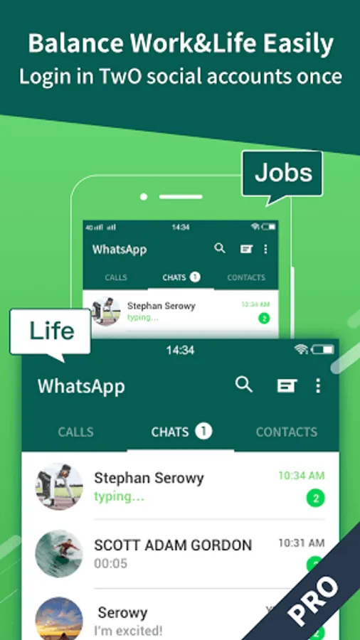 2Face PRO - Multiple Accounts Master help you clone and run multiple social&game accounts online simultaneously on one phone.