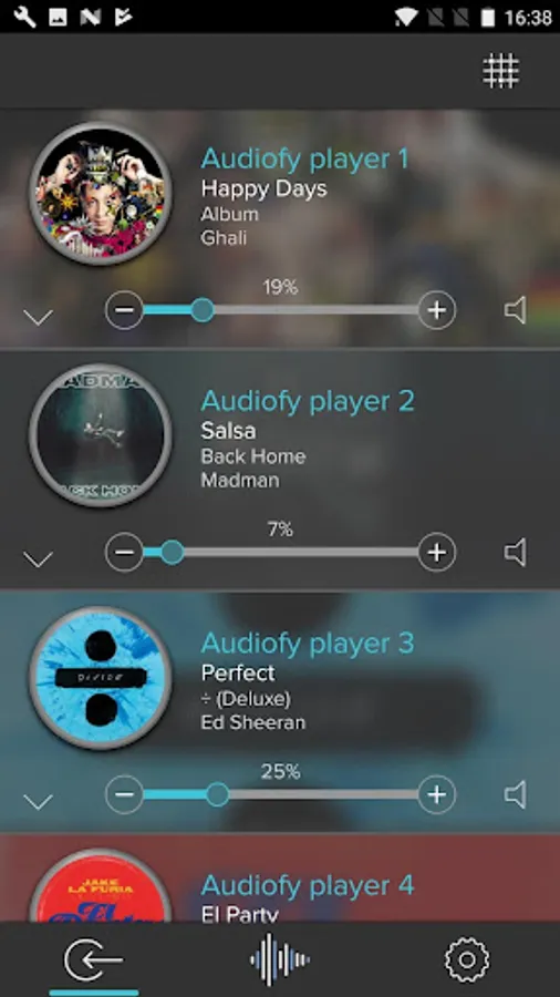 Through this app, the final user decides the routing of the audio sources and has a complete control over his music listening experience. The internal players are controlled directly from the app, the music library provided by a NAS or USB stick can be browsed with a simple menu.