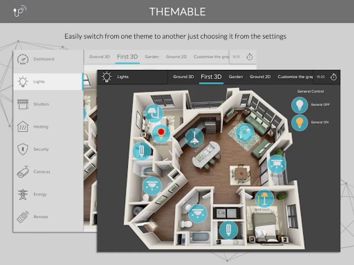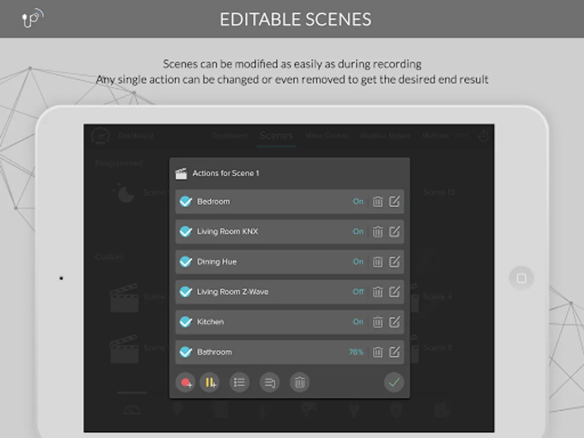 Thanks to the experience of thousands of installations Thinknx has created Thinknx UP. It puts together an unprecedented freedom for the end user with an even faster and simpler commissioning for the system integrator. The app raises UP the level of user interfaces for professional home automation.