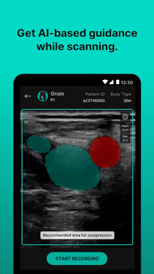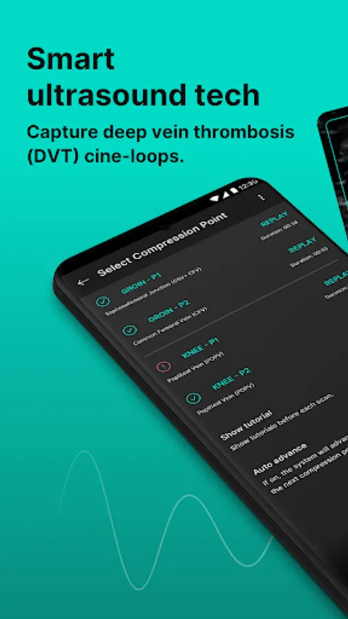 1. Learn how to perform POCUS ultrasound exams via in-app tutorials and real-time AI Guidance (currently only DVT exams supported).