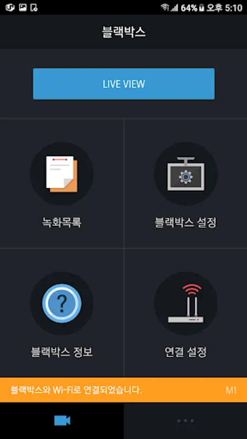 ▶ 스마트폰이 블랙박스에 연결되어있을 때 라이브뷰 버튼을 통해 실시간 영상 확인 가능.