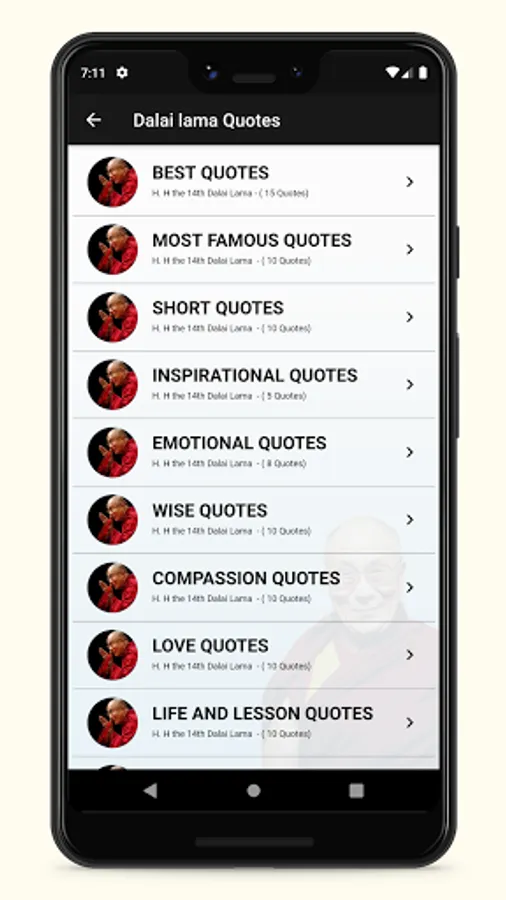 Here in this app, there are total of 120 different quotes based on different category. The categories are as mentioned below :