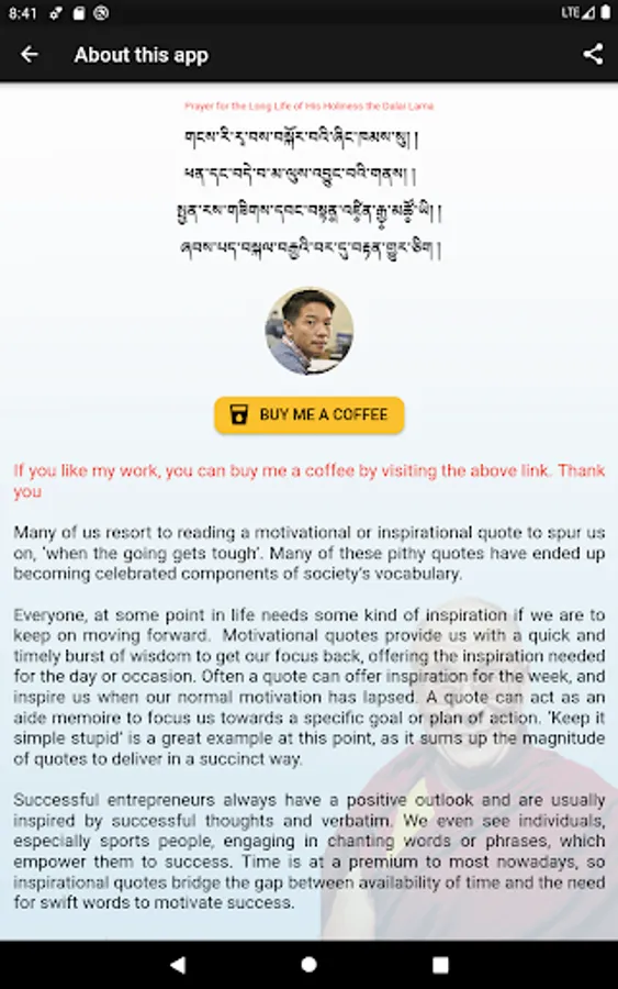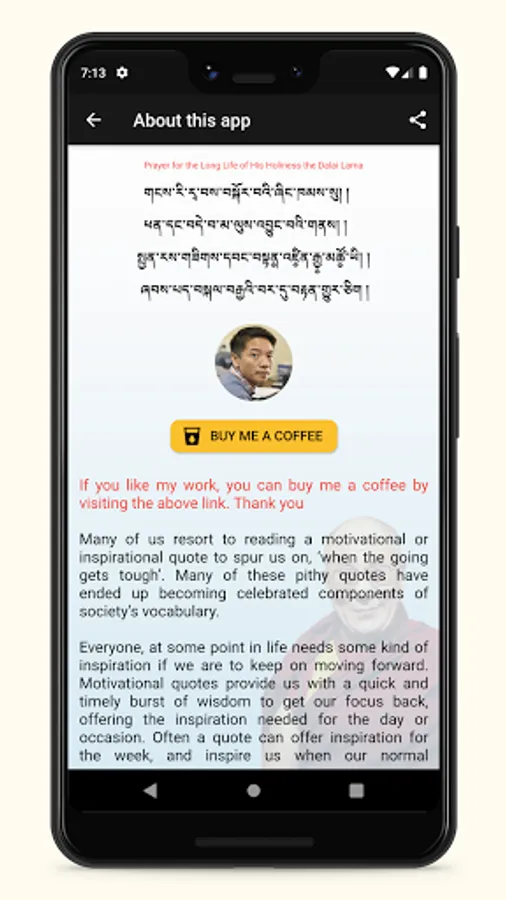 Stay motivated always. If you like my work, you can buy me a coffee by visiting the link given in the app.