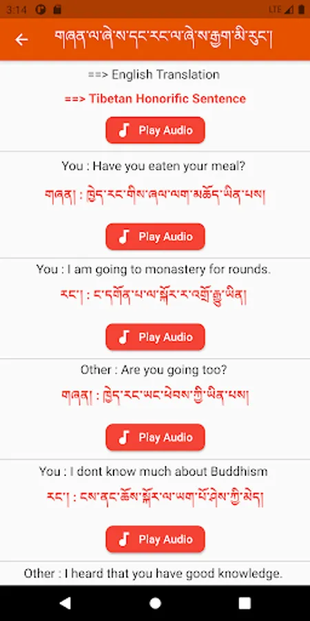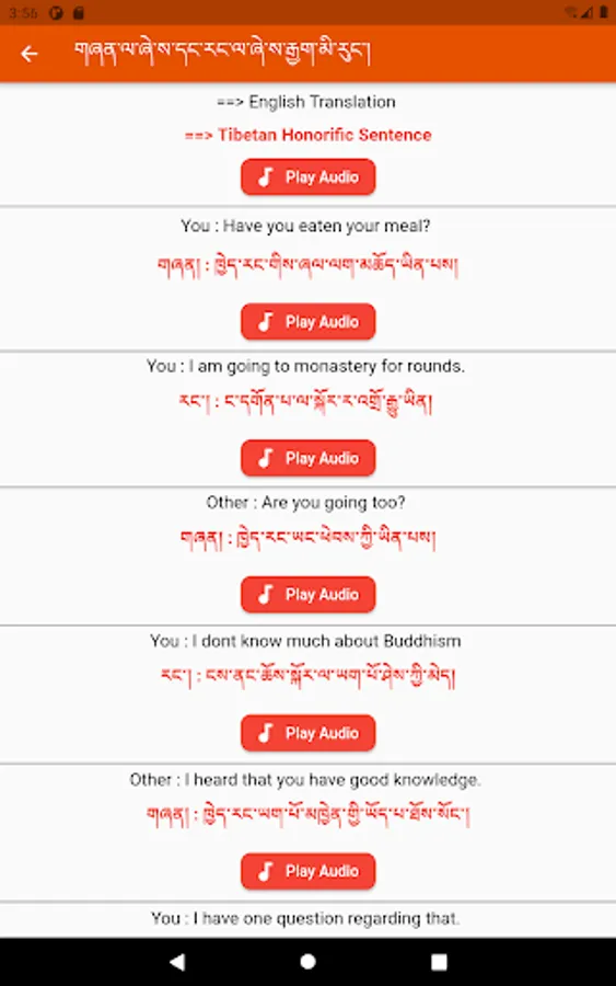This app also contains audio in case one wishes to learn pronunciation also. And it also has English translation which will be helpful for non-tibetans to learn honorific in case they wish to learn. Over-all, if you like this app, then kindly share your experience in the store.
