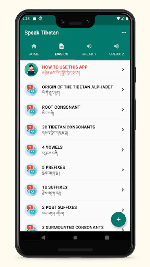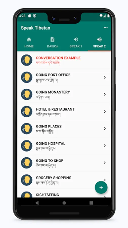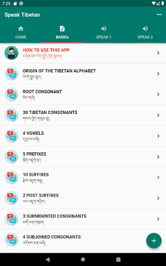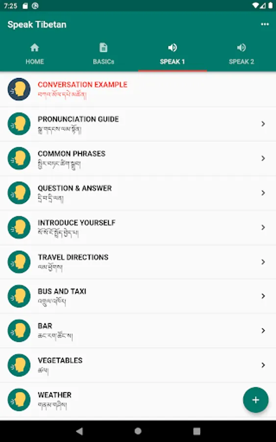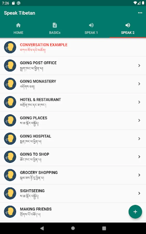 After my tibetan prayer app release in Android, people started requesting me that I should make one for tibetan language because there are many tibetans who are having difficulties speaking tibetan as well as there are many people who like to learn tibetan language as tourists or if they wish to read buddhist scriptures. So I thought why not make an app to learn tibetan language since there is no any app that teaches you basic tibetan grammar and conversations with audio. So this app has following features.