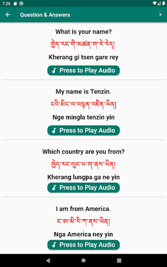 The objective of coming up with this app is obvious since there are many people who don’t know how to speak in tibetan properly or they don’t know at all. So there is a need of app which not only teaches you how to learn the grammar, it also teaches you how to speak in different occasions or scenario. And I am hundred percent sure that this will be helpful to you and your family.