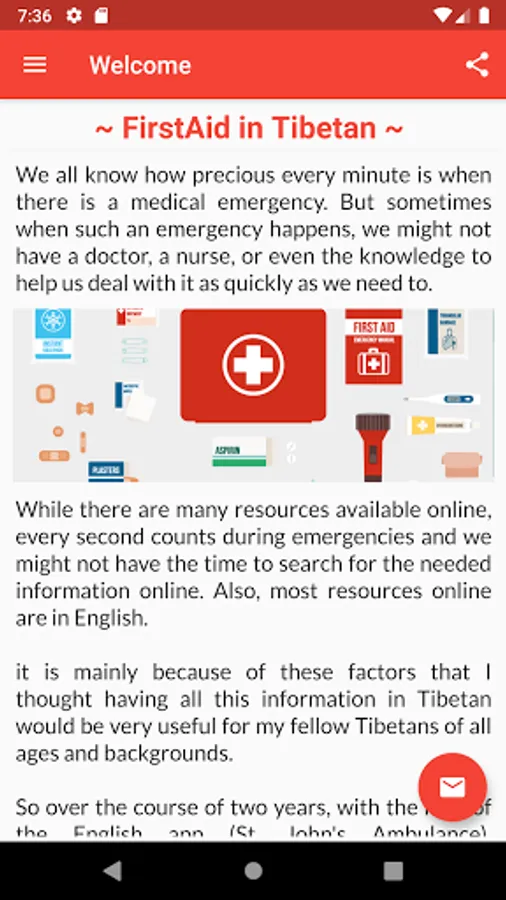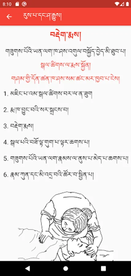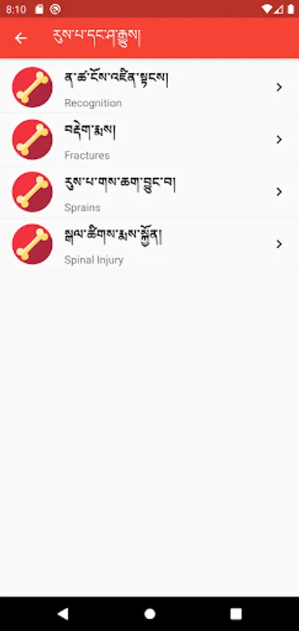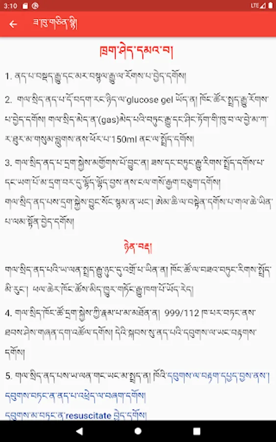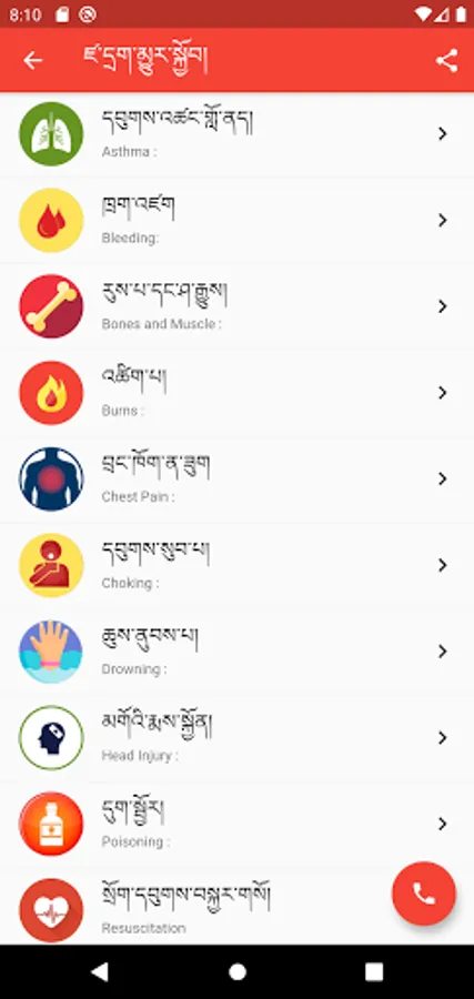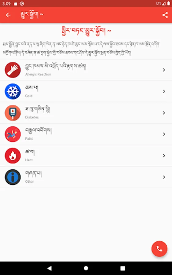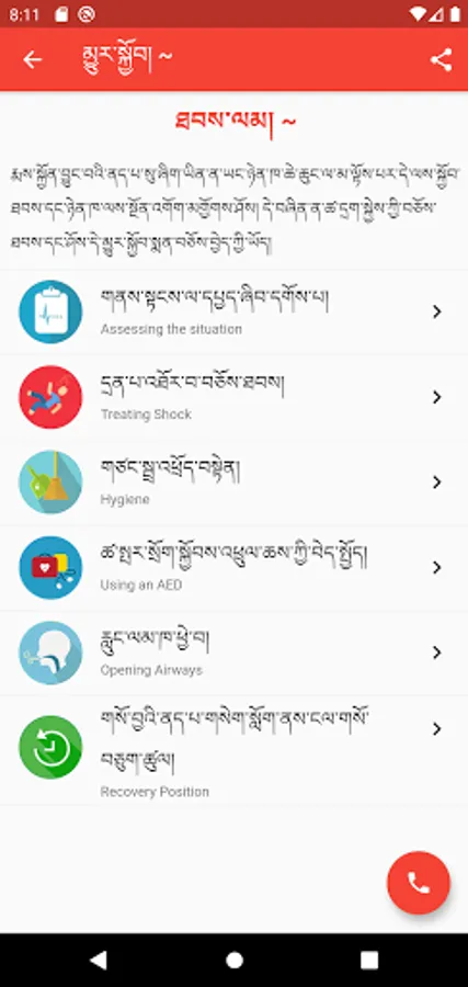 In this app, we have directly translated of all the data in the St. John's Ambulance App into easy-to-understand Tibetan for the benefit of those who find it difficult to understand medical terminology in English or those who do not read English.