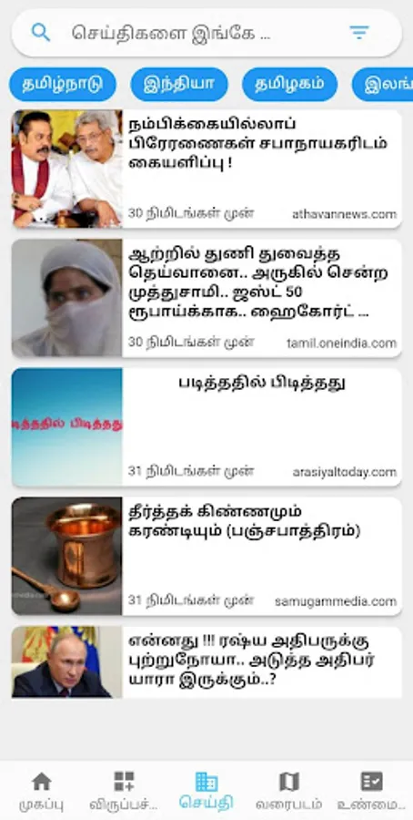 Thiral.in, News Intelligence Platform powered by AI. It provides almost all Tamil digital news in a single platform (90 websites as per April2022). It has a feature to read by keywords, districts, media, date wise. It also provides string search (since 2021 April), Trending Keywords, News clusters, Event based story search and Geospatial representation.