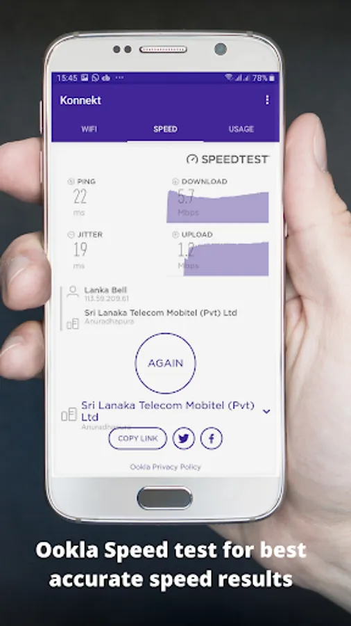 We have used Ookla speed test (The leading speed test provider) to get the best speed test estimates for you.