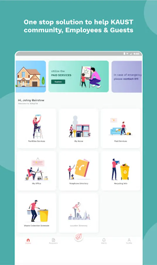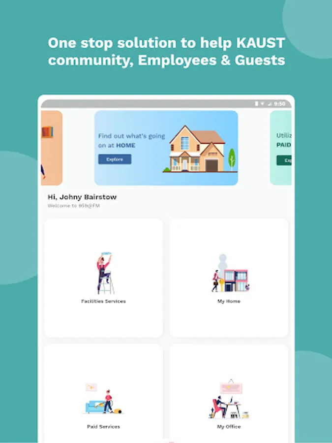 959@FM is an easy way to book your facilities services at KAUST without calling 959. Just download the app, create an account, and let us know your needs. Manage your requests on the go, check your request progress, check your request history, check your home details, enquire about any service or info, raise your complaint, get real time notification, and rate your experience to help us maintain quality services.