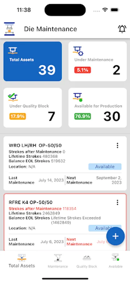 Track die status, get alert on preventive or scheduled maintenance and create work orders for maintenance and quality jobs.