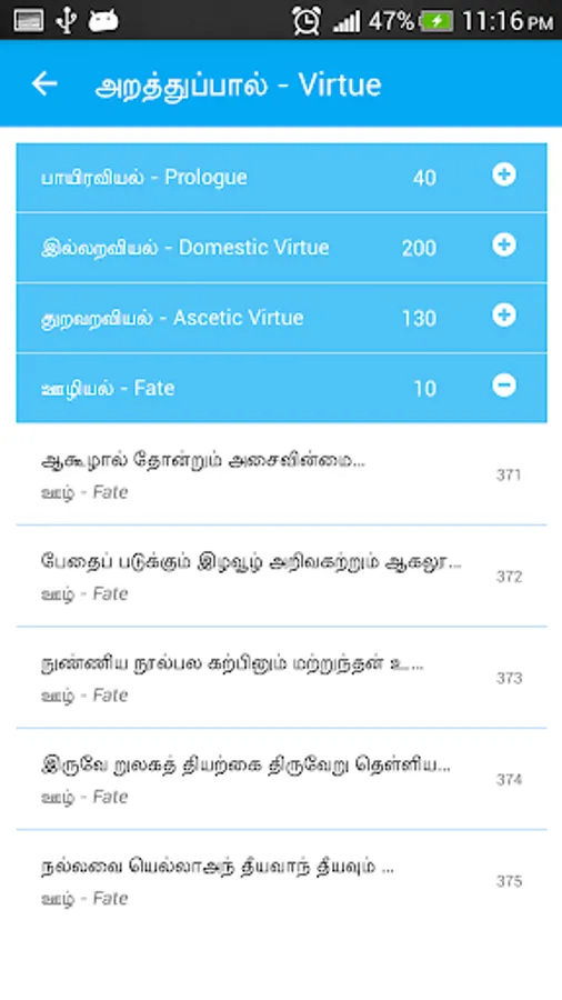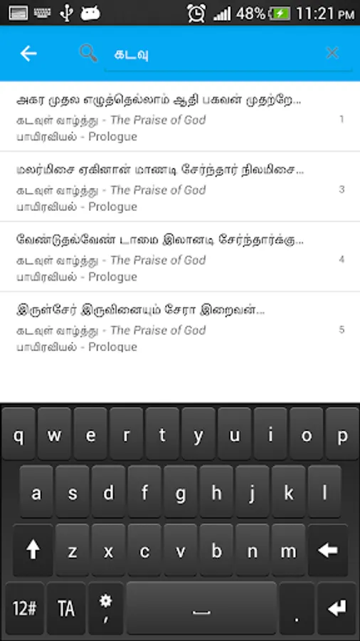 Thirukkural app created by ThirdEye Apps is developed with the intention of making this noble text more accessible to both tamizh and non-tamizh speaking people around the world. The app search capabilities along meaning.