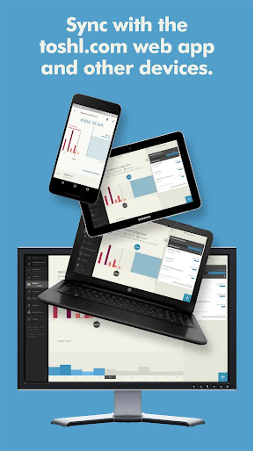 - open toshl.com on your laptop, desktop computer or tablet and use Toshl in comfort on a large screen