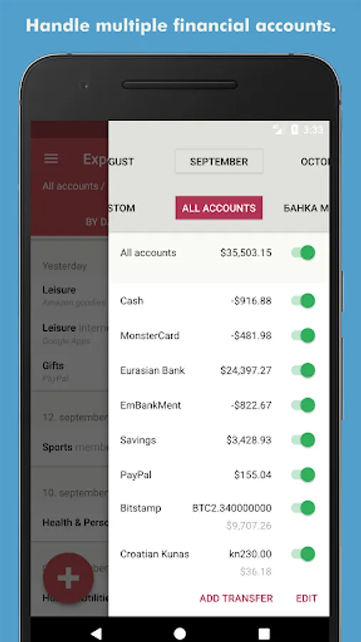 Track all your credit cards, bank accounts and cash in one place. Toshl Finance helps more than 3 million people keep track of their personal finances. Know your finances. Have fun!