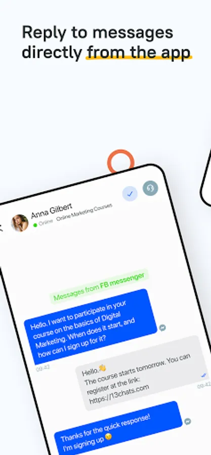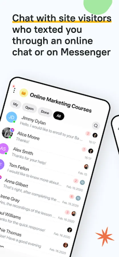 — receive notifications about new chats in order to quickly answer customer questions and close more deals;