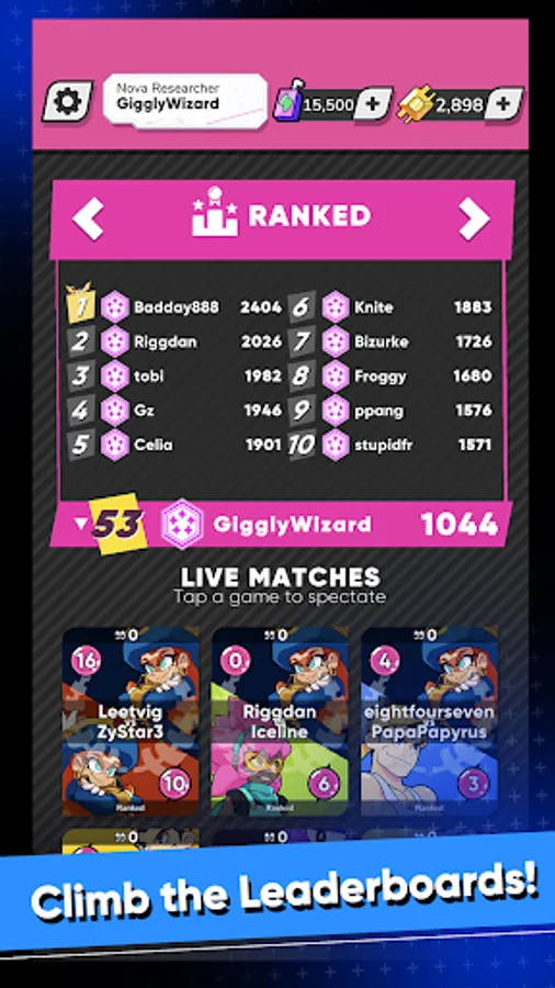 - RANKED - Vs players around the world. Level up on RESEARCH ROAD, collect NOVA JUICE, and climb the leaderboard!