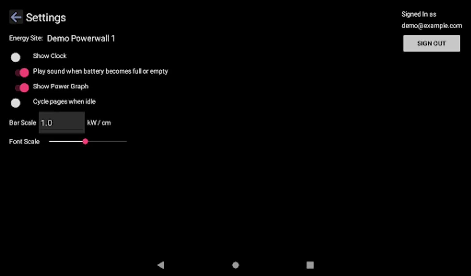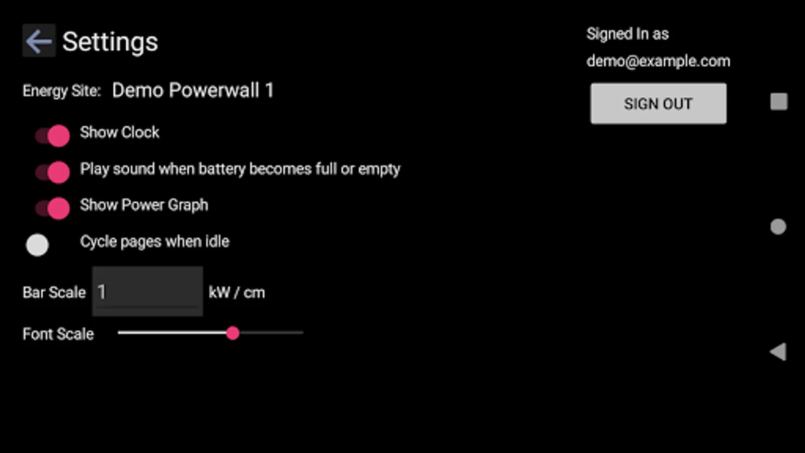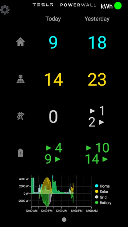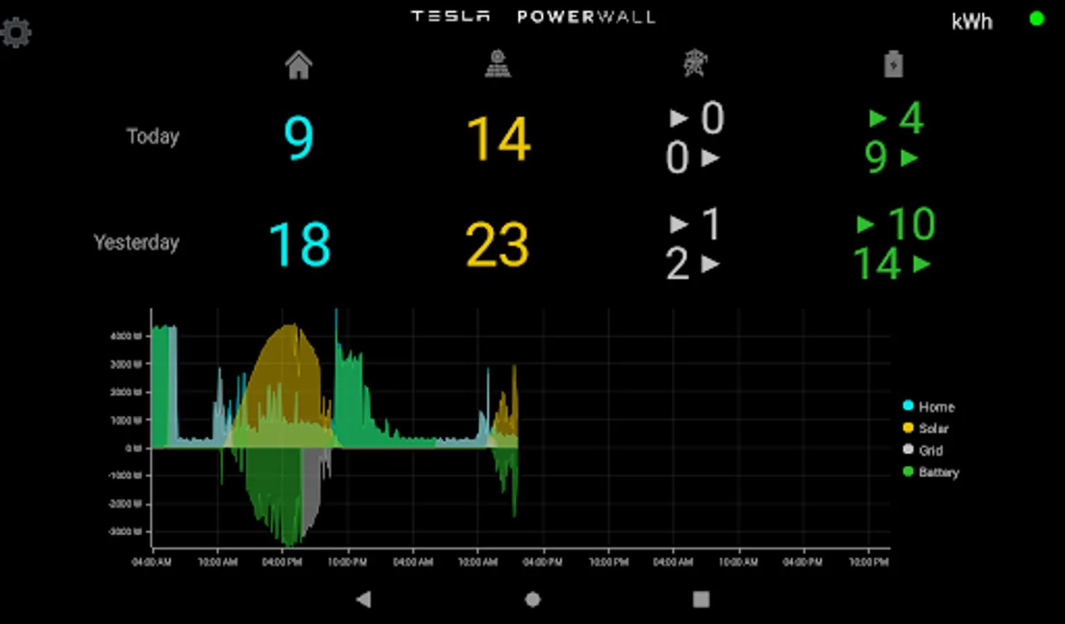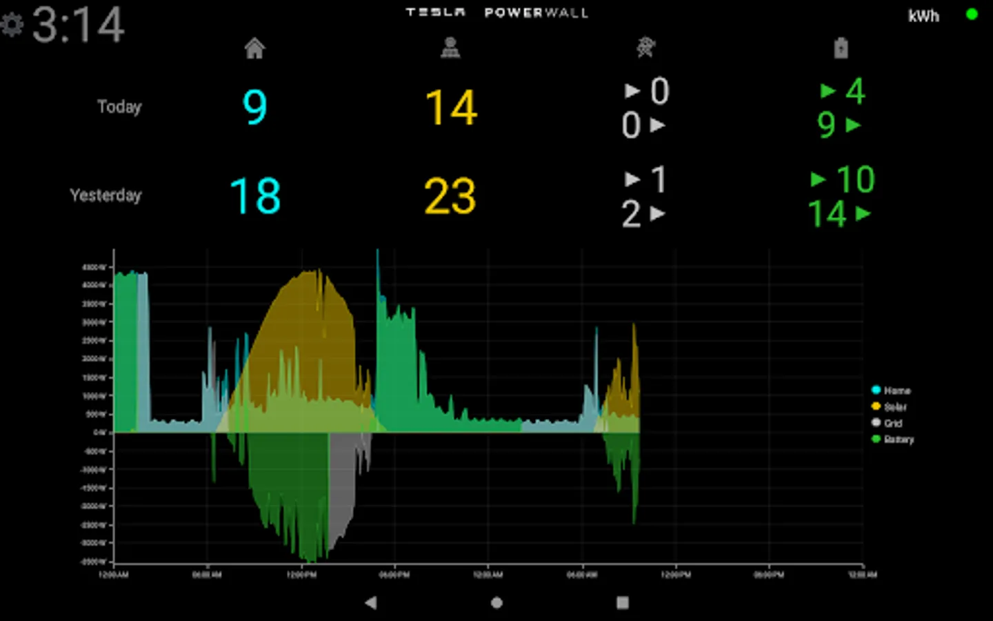 Turn your old phone into a dashboard for monitoring your Tesla Powerwall battery, solar generation and home energy use! This app provides an always-on, glanceable view of your household energy use, storage and generation. Requires a Tesla Powerwall 2 battery system.