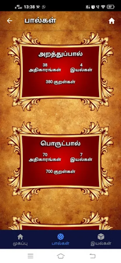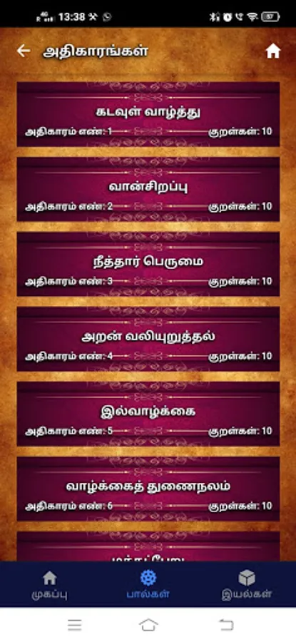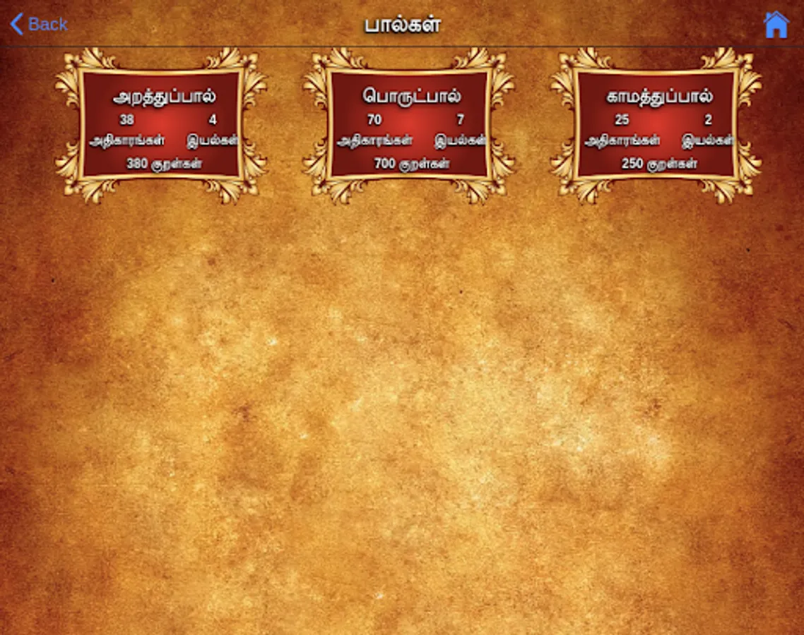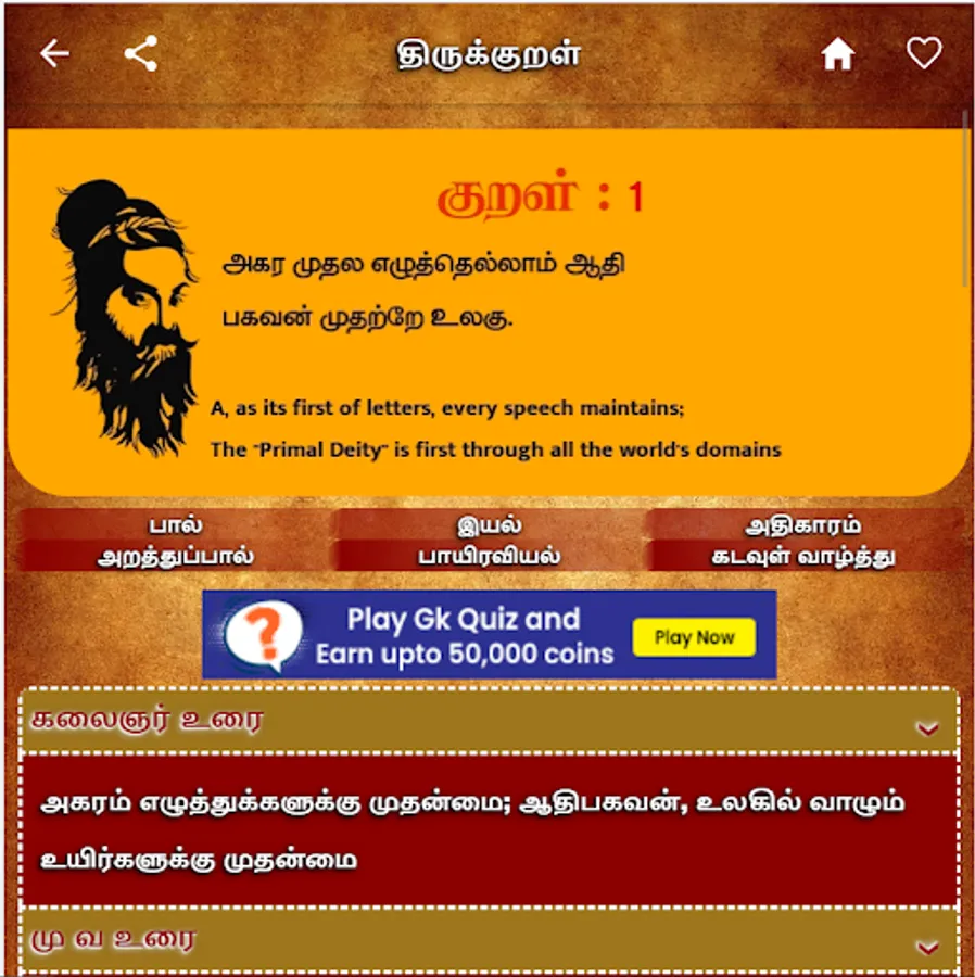 Options for selecting your favorite Kural and Adhigaaram.