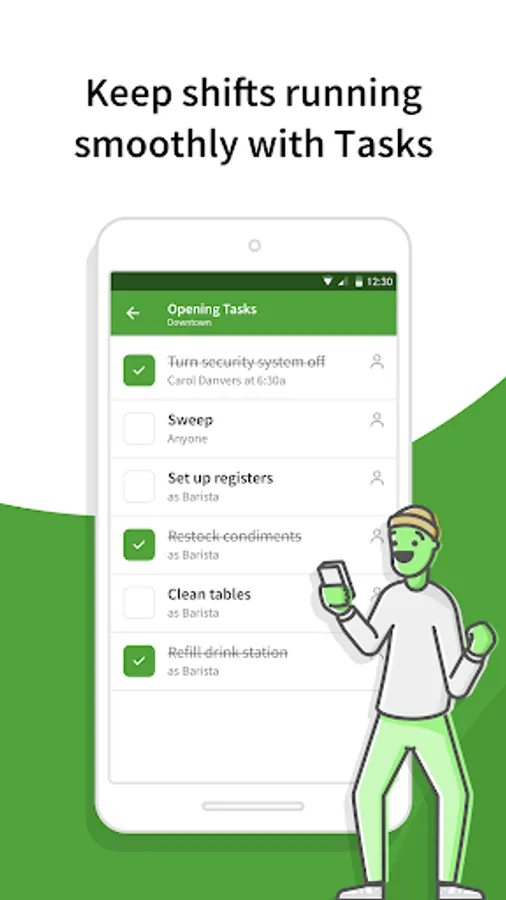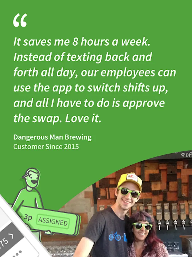 • Confident shift coverage - Receive shift confirmations from employees and be notified immediately of swaps and drops.