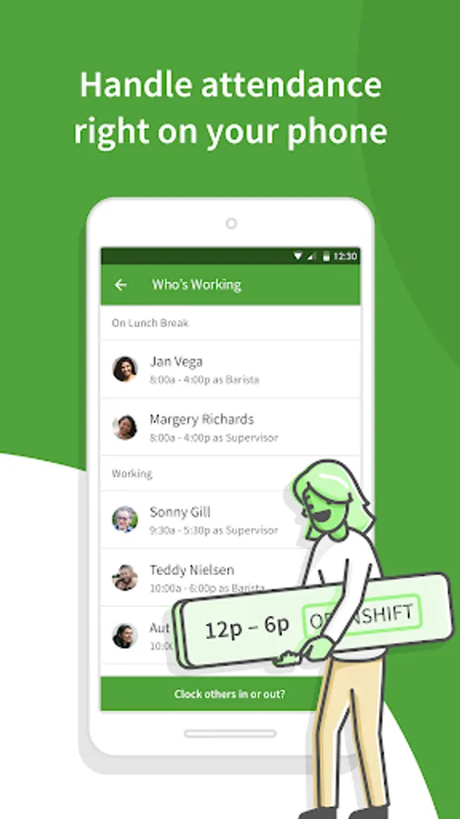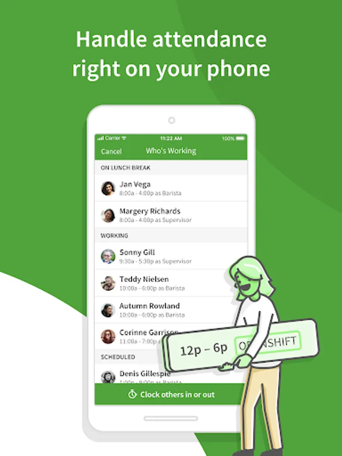 • Team management - Onboard new employees, approve time off requests, review shift trades, and fill shifts in seconds.