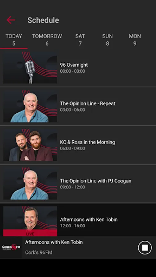 Listen live to Cork's 96FM, or listen back to recent shows: The Opinion Line with PJ Coogan, On Demand with Steve Haze, Breakfast with Nick Richards, and Emmet Kennedy. You can also check the latest Entertainment stories and events on the Cork Diary. Get in touch with the station through email and social media.