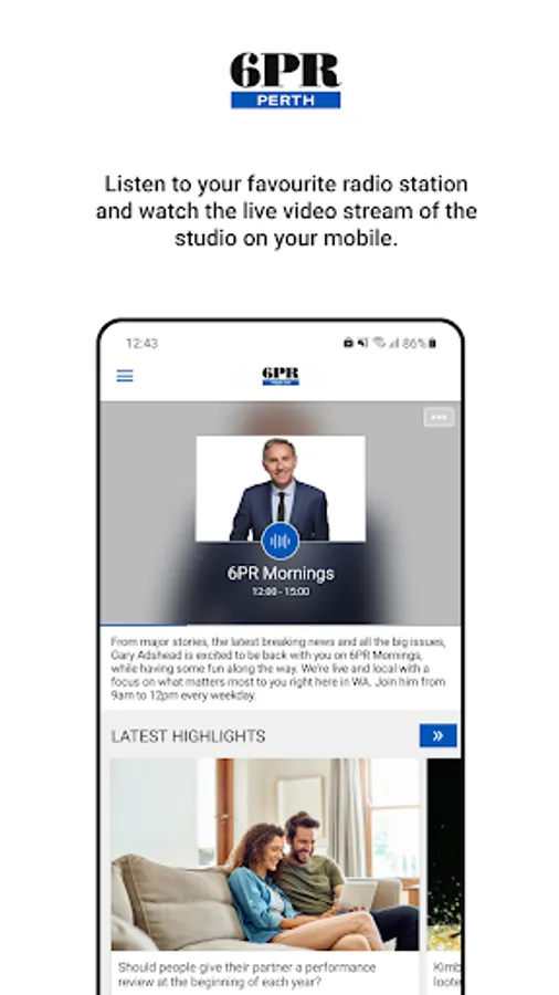 Download the 6PR radio app to listen to Perth's favourite talk back station - LIVE on your device.