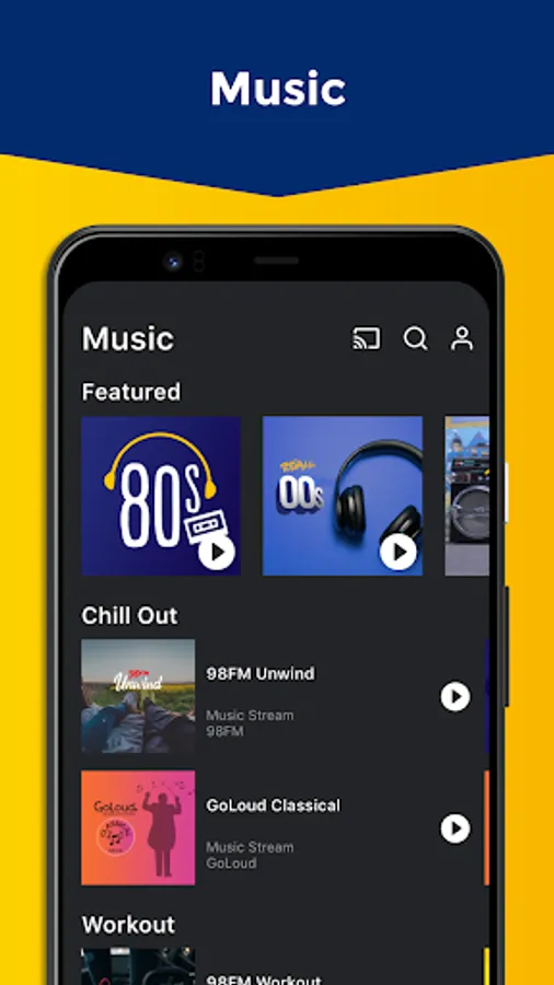 ・Play music streams - ready-made playlists curated by music experts that suits your mood or occasion