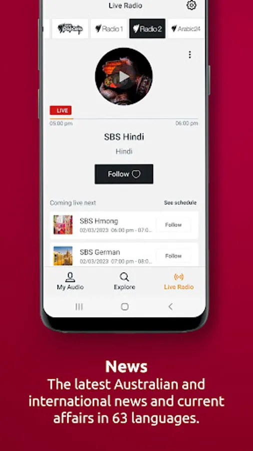 The SBS Audio app (previously known as SBS Radio) connects you to music, Australian news and current affairs, podcasts and community updates in your language.