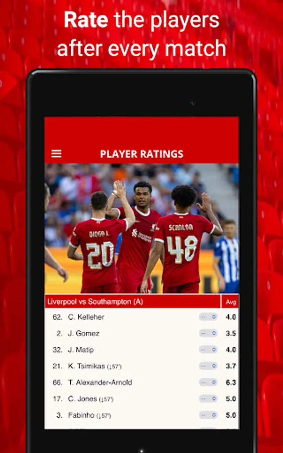 Get involved with player ratings, a starting lineup picker and regular quizzes and polls.