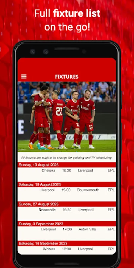 Quick access to upcoming matches, as well as match reports from previous matches.