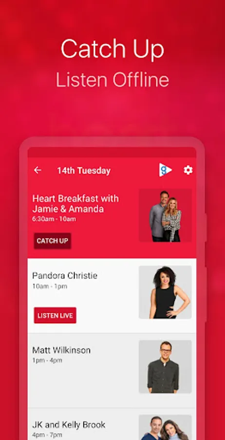 With the Heart App powered by Global Player we've made it easier than ever listen to your favourite shows on Heart! Whether you’re waking up with Jamie and Amanda on Heart Breakfast or partying the night away with Club Classics, use the Heart app to get closer to the music and presenters you love!