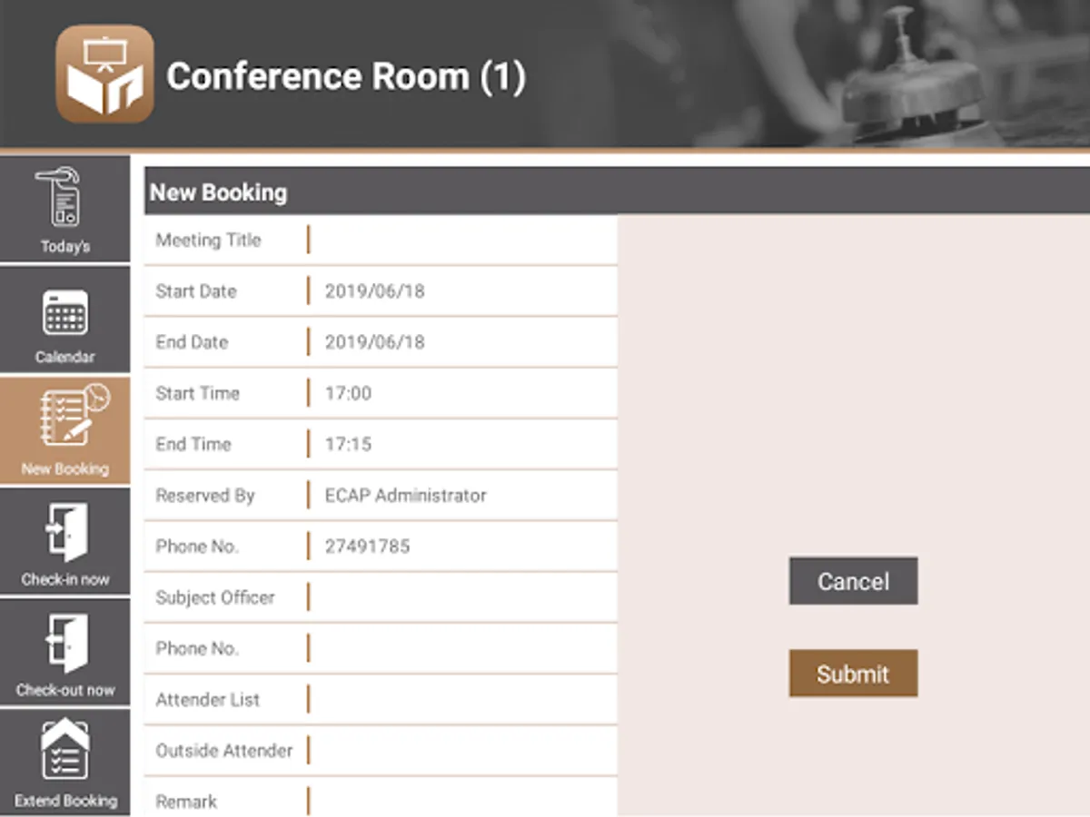 The system stands out by user-friendly interface, check-in / check-out and policies enforcement functions to avoid abuse of use as well as reporting for utilization analysis or security audit.eRoom Manager is a mobile app of the System to support end users schedule meeting, book resources on the road.