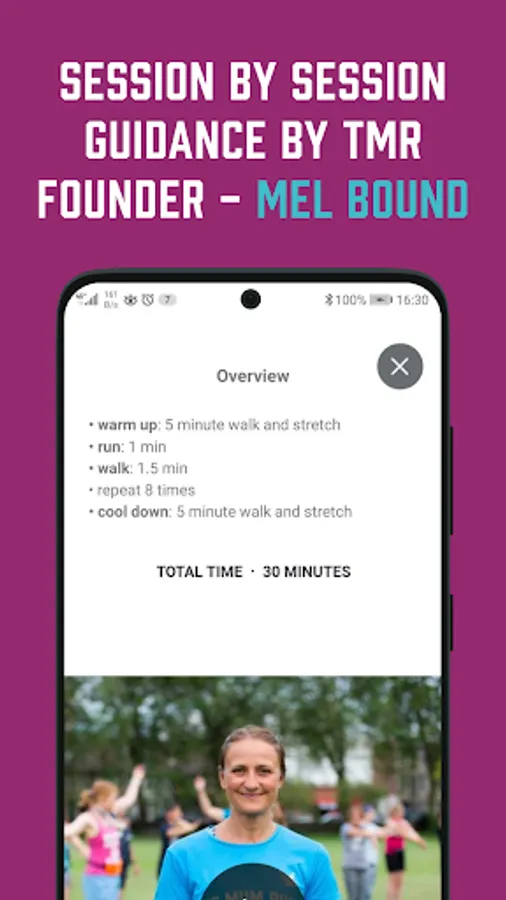You can start wherever you feel comfortable and repeat sessions if you need to, all with the support of TMR Founder, Mel Bound who will encourage you, give you supportive tips, and let you know when to run and when to walk.