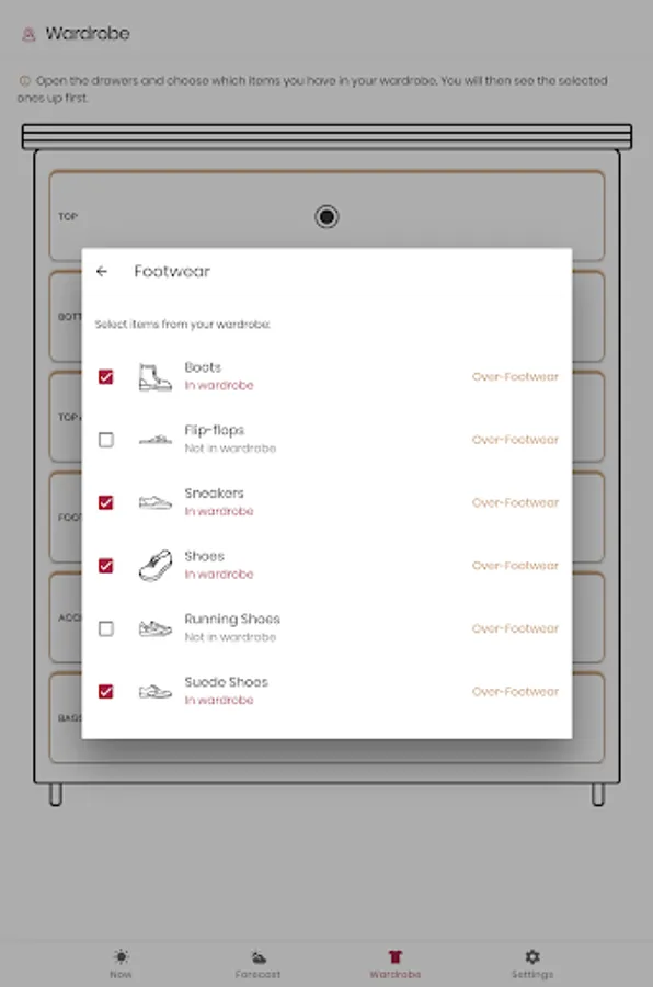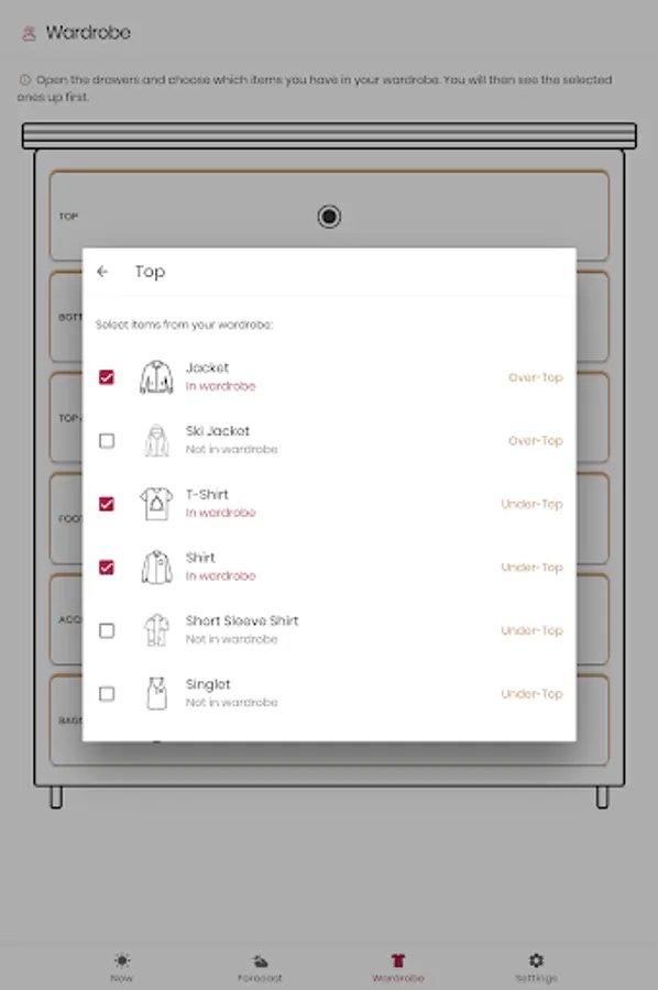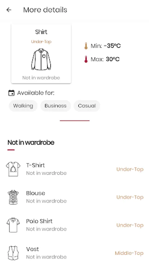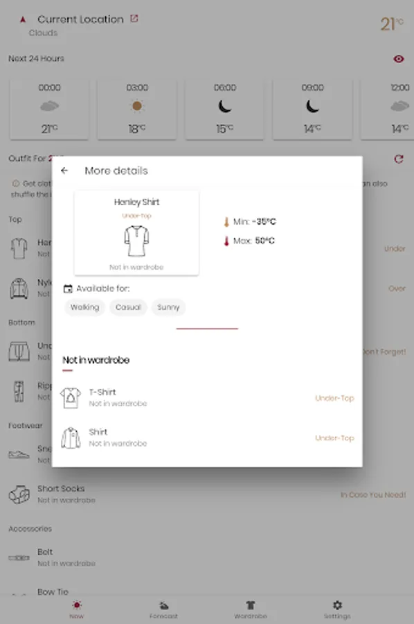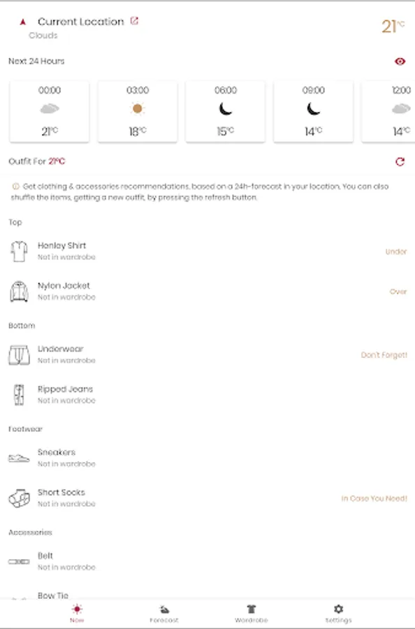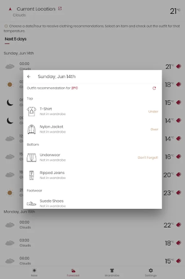 Whether you're packing for an upcoming trip or just planning your outfit for tomorrow, the Wear This - Outfits by Weather application has all the suggestions you need. Equipped with both real time and forecasted weather planning, just select the clothing items you own from a vast list and the application will do the rest.