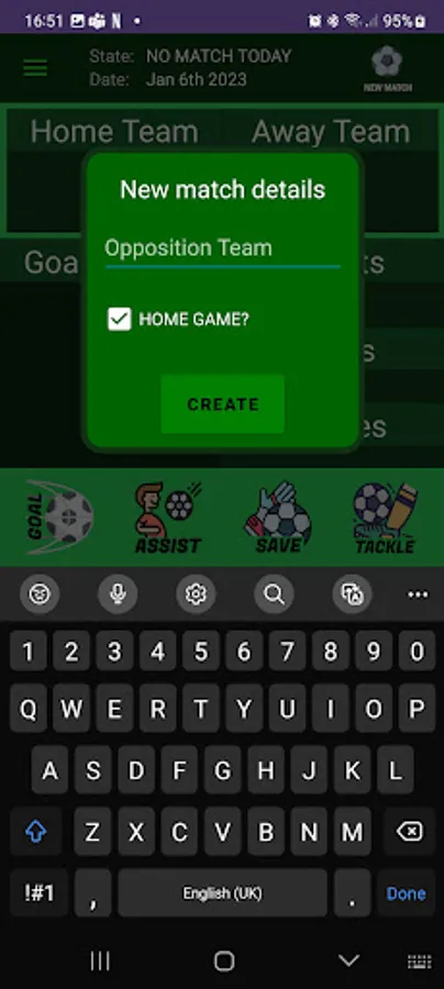 With this app you can keep track of your local football matches and log Scorers, Saves, Tackles and Assists.