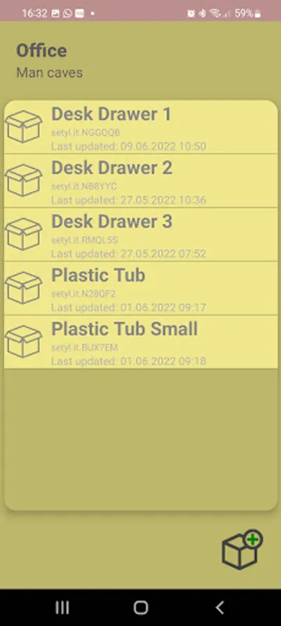 Place you items into a box. Label the box, or place a QR code on the side. Take a photo of the contents, and list as much information you want about what's inside. Click save and seal the box.