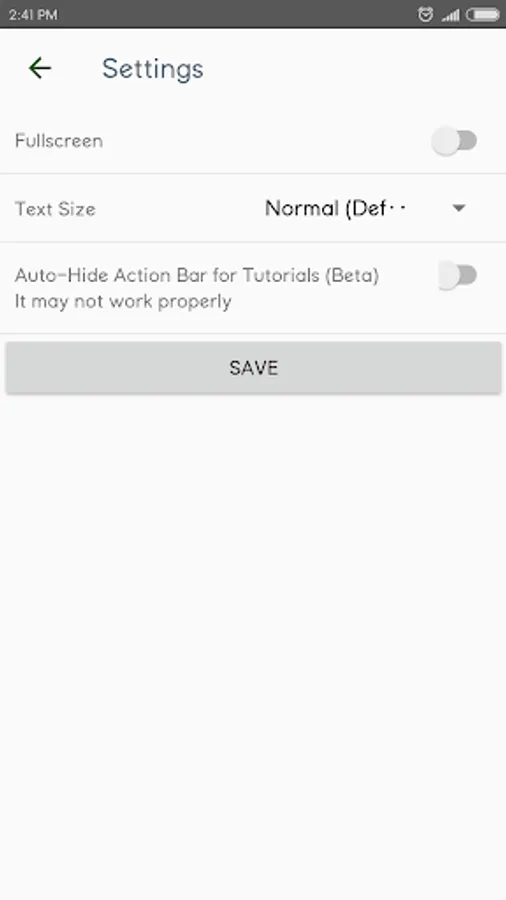 β Settings - Text Size, Full-Screen Mode, Auto Hide Action Bar(Beta)