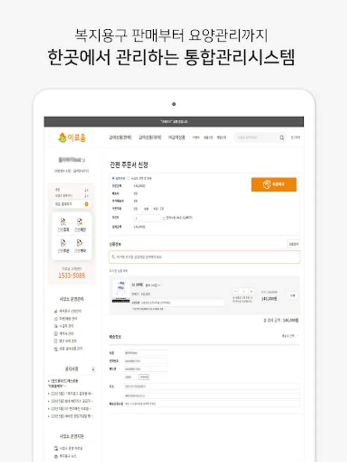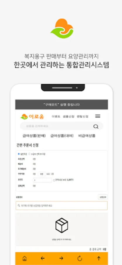 If you want to hold inventory at your business location, if you place an order without selecting a contractor, the order is received by the manufacturer and registered as on-hand inventory after delivery is complete. Barcode information given by the manufacturer for welfare equipment is entered together, so product inventory can be easily managed online.