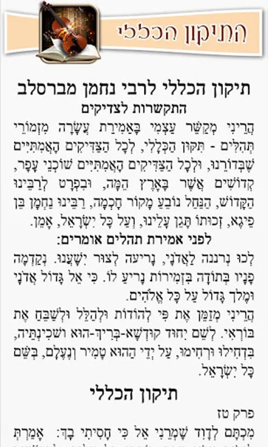 ● General Tikun "Rabbi Nachman gathered ten Psalms each aimed at a different type and power of sacred melody, and all together, they are said okay discovered," they complete repair and very, very helpful "(Ran calls PAO), "and this amendment is a brand new patch, and did not know that any existed since the days of the world"