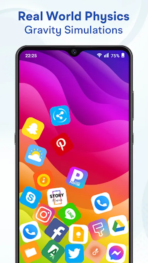 This wallpaper is inspired by real world physics. It has real world gravitational physics simulations. Icons and photos in this wallpaper reacts to gravitational force.