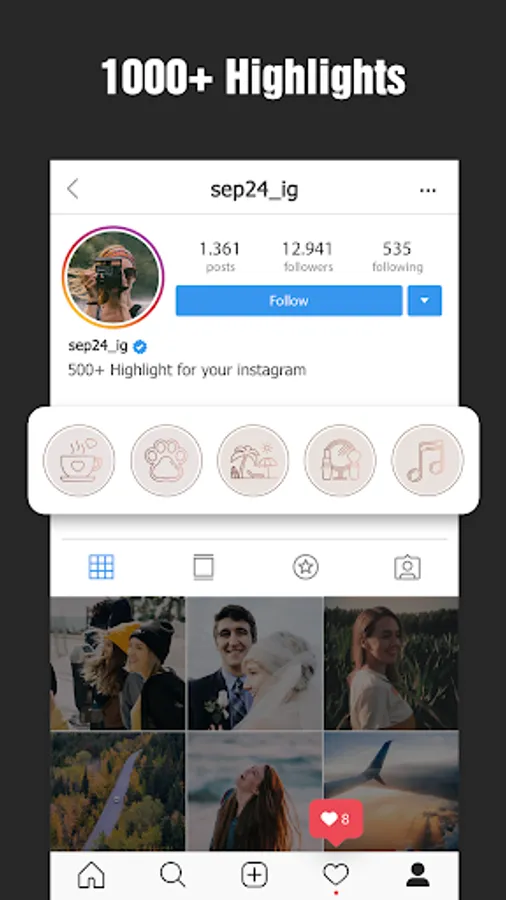 Export your stories in high resolution and sharing to other platforms like Instagram Story, Snapchat Story and Facebook Story.