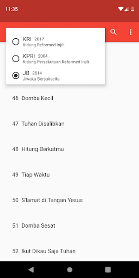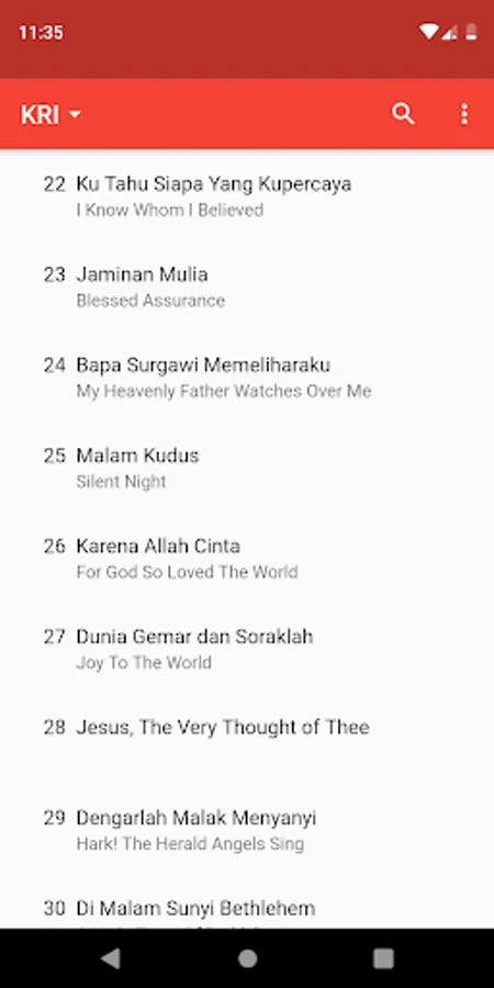 - Songs from the book Song of Reformed Evangelical (KRI) which contains 333 songs complete with the original author and title.